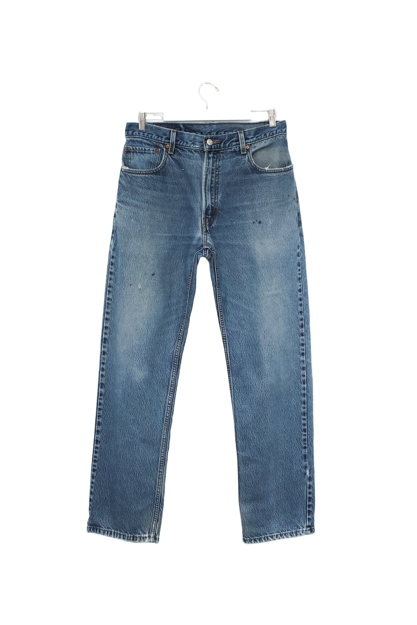 Our denim is vintage and may show signs of wear, natural distressing/wear, repairs, and imperfections such as light marks or stains.